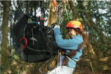エイトカンなどの扱い方、ロープやスリング、カラビナなどの特性や使用方法など一番基礎になる事から学習しています。最初から学習したい方にはステップTからの受講がお薦めです。自分自身がツリーランから脱出する方法のステップTからパラグライダーを自分で回収できるようにステップWまでのコースがあります。