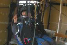 (3)パラのハーネスから脱出成功しました。また、自分の持っているギアの意味や取り扱い方も理解します。ギアが落ちないように、作業し易いように収納の仕方も学びます。 |